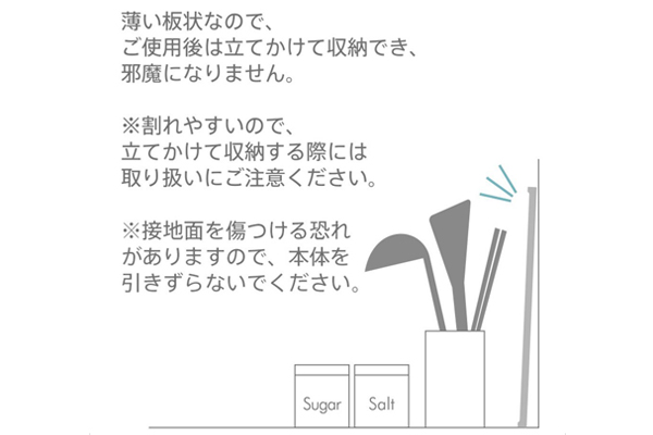 ●薄い板状なので、ご使用後は立てかけて収納でき、邪魔になりません。