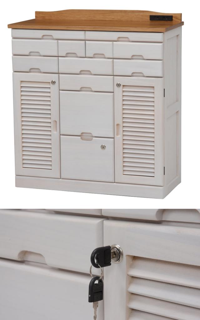 《 LH2373 隠しキャスター 2口コンセント ルーター収納 キャビネット 12杯 扉収納 FAX 電話 玄関 リビング 防犯 貴重品 モデム ルーター 幅75 奥行30 35 高さ85 80 83 cm センチ 引出し 引出 便利 生活 おしゃれ お洒落 オシャレ 模様替え 白 》
