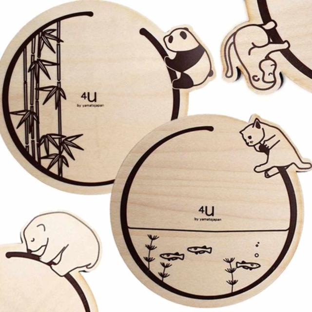 コースター 木製 動物 リング 合板 コップ敷き 日本製 ( プレート 敷き 木 アニマル グッズ おもしろ おしゃれ さる ねこ ぱんだ しろくま 食器 雑貨 テーブルウェア 北欧 コップ おもしろ雑貨 インテリア 茶托 ラウンド )