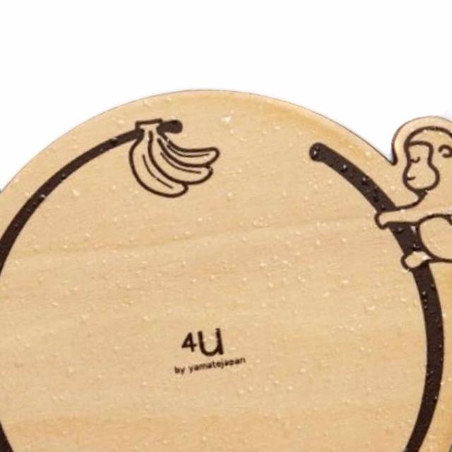 1つずつ異なる木目をしており、世界に1つだけのコースターです。飲み物を置く位置にはそれぞれの動物の気になるものが描かれています。目の前の大好物に手が届きそうで届かない・・・もどかしい気持ちの動物がデザインされています。