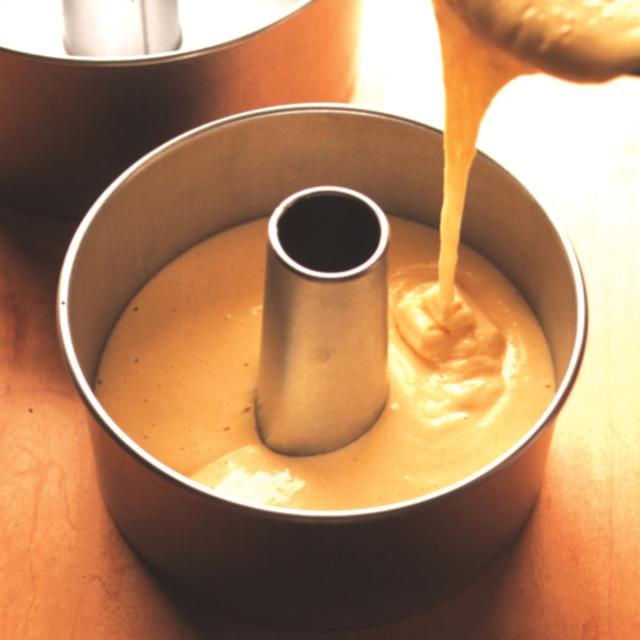 機能性にすぐれたスチール製のシンプルなシフォンケーキ型