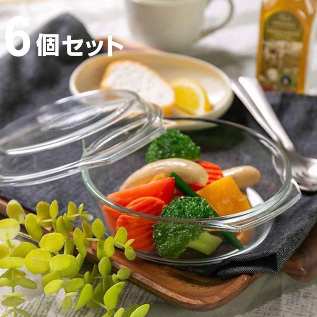 スチームポット ふた付き Pyrex パイレックス 16cm 700ml 丸 耐熱ガラス オーブンウェア 6個セット ( 食洗機対応 電子レンジ対応 オーブン対応 皿 食器 ディッシュ スチーム調理器 ガラス製 蓋 フタ ふた 付き 調理 レンジ )