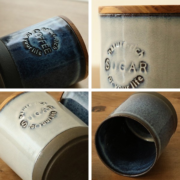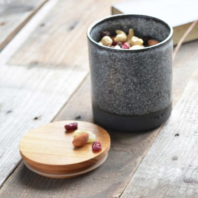 こだわりの黒土でつくられたキャニスター。様々な表情をみせる釉薬と、職人の手押しによる判と相まって、味わいのある製品に仕上がっています。