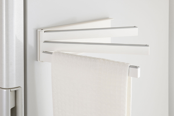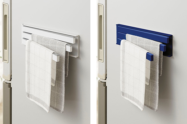 冷蔵庫横やスチール面などマグネットが貼り付くところなら簡単に取り付けできるふきん掛けです。マグネットなので何度でも取り外しができ、自分の一番使いやすい位置に自由に設置ができる便利なアイテムです。