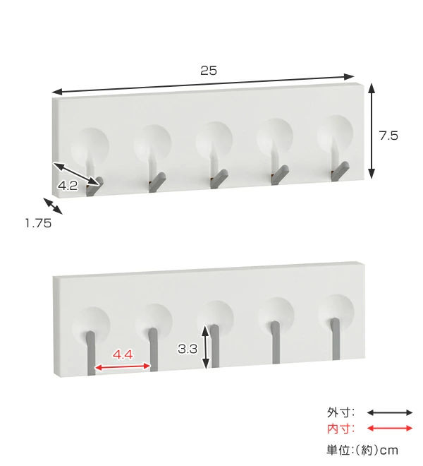 | サイズ | 約 幅25×奥行1.75×高さ7.5(cm) フックを開いた時の奥行き:約 4.2(cm) |