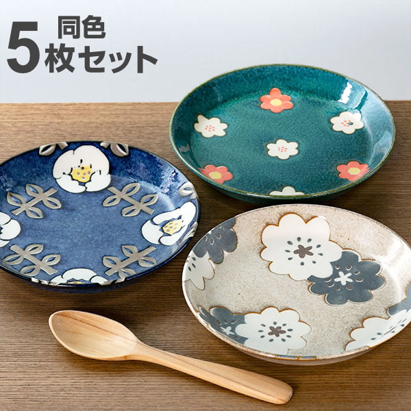 プレート 14cm ノルディックフラワー 磁器 美濃焼 日本製 同色5枚セット ( 食洗機対応 電子レンジ対応 ケーキ デザート 皿 北欧 花柄 洋食器 デザートプレート お皿 丸皿 取り皿 取り分け皿 小皿 モダン おしゃれ )