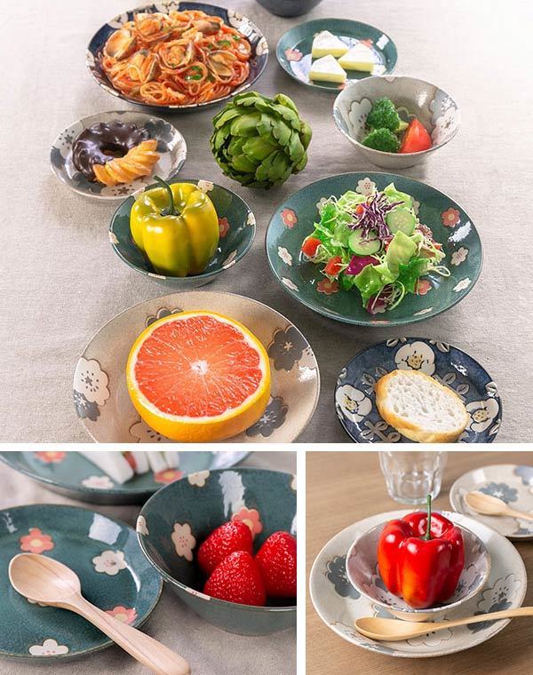和洋どちらの食卓にも似合う、北欧×和モダンな器「ノルディックフラワー」シリーズです。レトロでほっと落ち着く中に新しさも感じるデザインです。和洋折衷で料理のジャンルを選ばず使えて、日々の食卓を可愛くお洒落に彩ります。