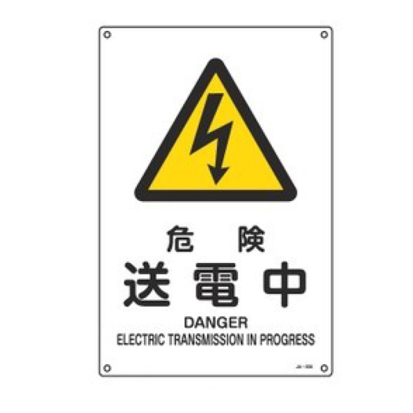 JIS安全標識板 警告用 「 危険 送電中 」 45×30cm Lサイズ ( 看板 危険標示 注意標識 JIS 安全標識 図記号 標識 表示 安全用品 注意 警告 注意警告 日本語 英語 二カ国語表記 )