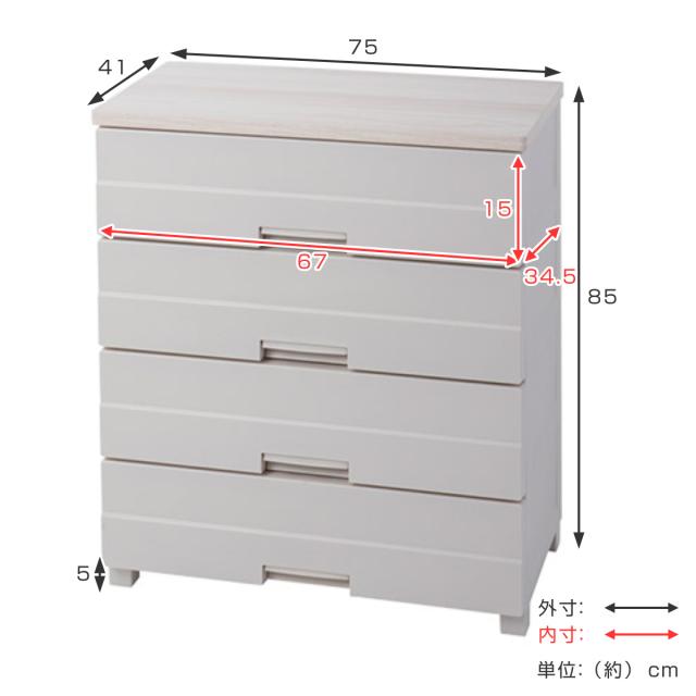 チェスト プラスチック 4段 フィッツプラスイージー FE7504 幅75cm 完成品 日本製 ( 幅75×奥行41×高さ85cm タンス 引き出し 収納 衣類収納 フィッツ Fits 衣装ケース リビング収納 洋タンス 収納ケース 木製天板 )