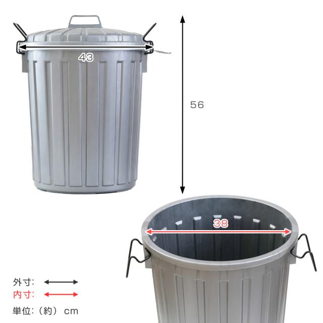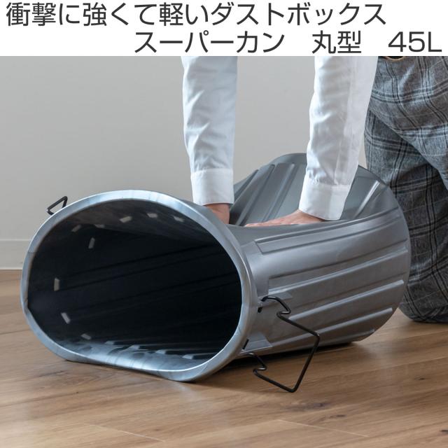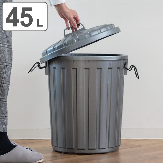 ゴミ箱 45L スーパーカン 丸型 ( ごみ箱 45リットル 屋外用 大容量 軽量 ふた付き 分別 トラッシュカン 日本製 3年保証 大きい 外用 屋外 シルバー ゴミ箱 おしゃれ)