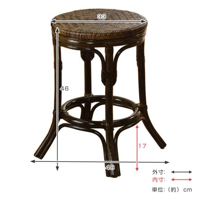 籐 スツール 円形 ハイタイプ 高さ48cm ( 椅子 籐スツール 籐家具 腰掛け ラタン製 チェア 籐製 丸椅子 和モダン アジアン 軽量 ハイ シンプル )