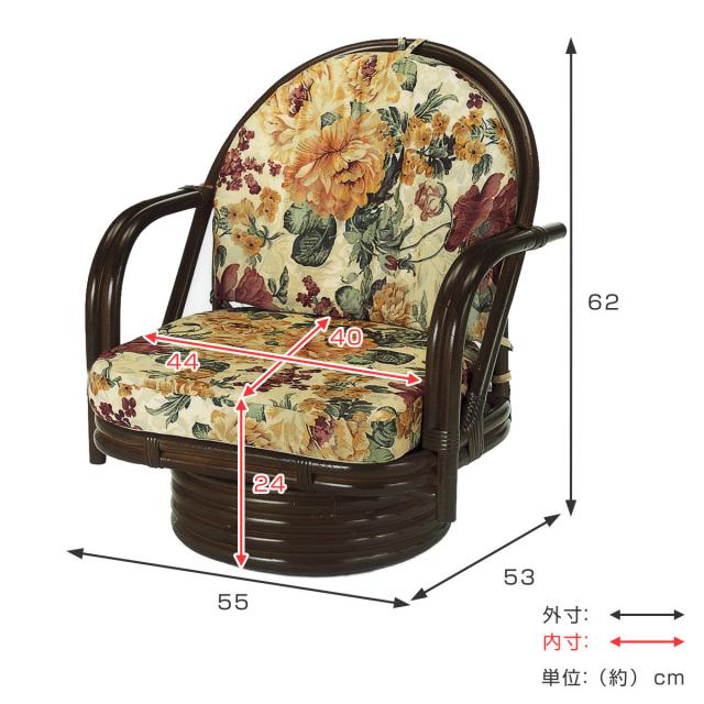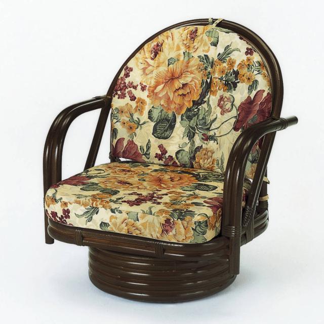 籐 回転座椅子 ミドルタイプ ラタンチェア 座面高24cm ( 回転式 背もたれ付き 肘付き 肘掛 イス 座いす アジアン 籐家具 花柄 和モダン ラタン リラックスチェア パーソナルチェア 籐回転椅子 )
