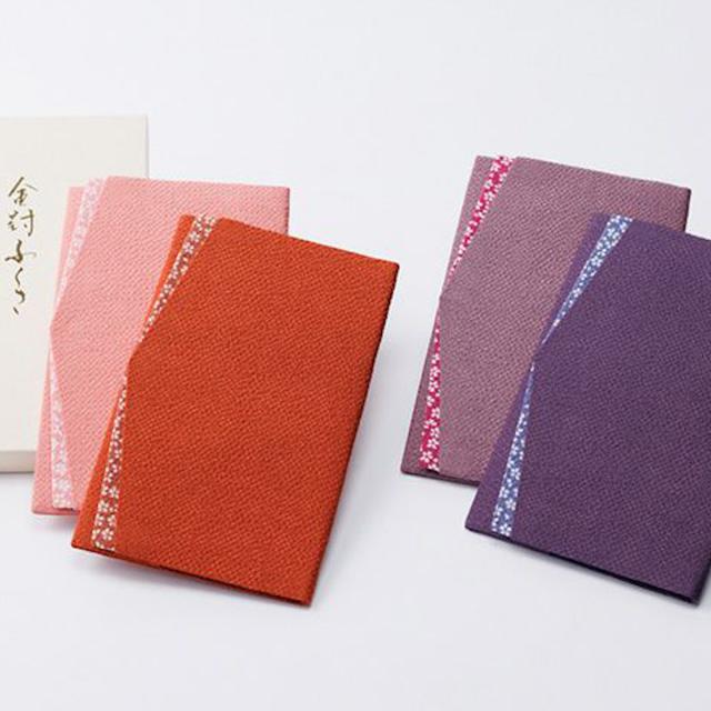 ちりめんが美しく、さりげない桜模様が華やかで、上品な雰囲気の金封ふくさです。お祝いごとには赤系統色、お悔やみごとには青系統色を選ぶのが好ましく、紫色は慶弔共通で使用できます。