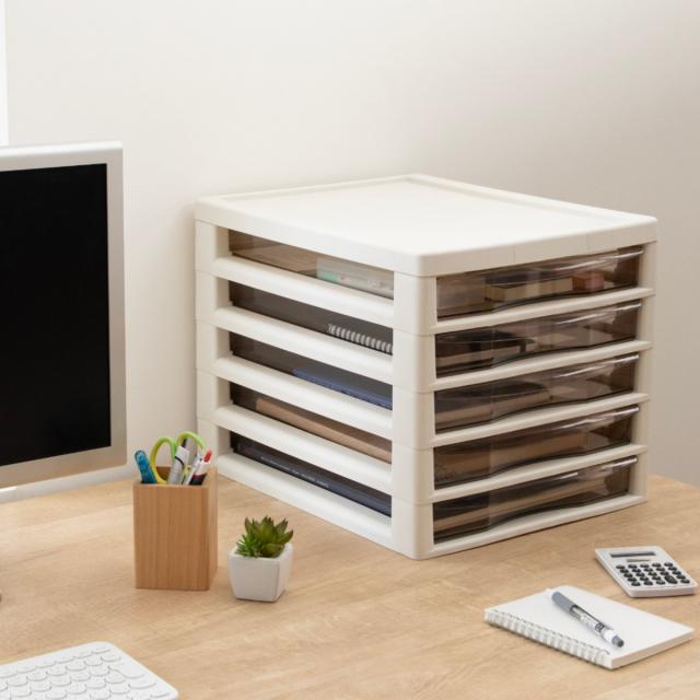レターケース B4対応 浅型 5段 アプロス 幅32.3×奥行40.6×高さ30.8cm ( 書類 収納ケース 卓上収納 多段引出し ストッパー付き B4 日本製 整理整頓 棚 整理 収納ボックス 収納 透明 ケース コピー用紙 小物置き )