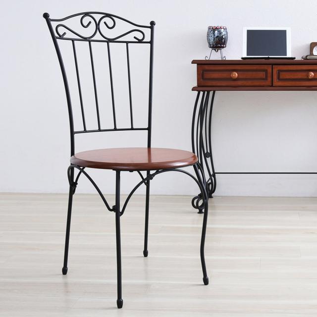 ダイニングチェア 座面高42cm ロートアイアン 姫系 ( 椅子 イス いす チェア チェアー リビングチェア ダイニングチェアー 木目 スチール アイアンフレーム )