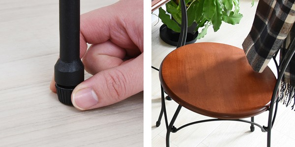 | ぐらつきを防ぐアジャスター 脚には高さ調節用のアジャスターが付いています。ぐらつきを抑えてセッティングできるので、安心してご使用いただけます。 | 自然な質感のラッカー仕上げ ラッカー塗装を施しているので、木の自然な質感を失うことなく、なめらかで柔らかな光沢が印象的です。 |