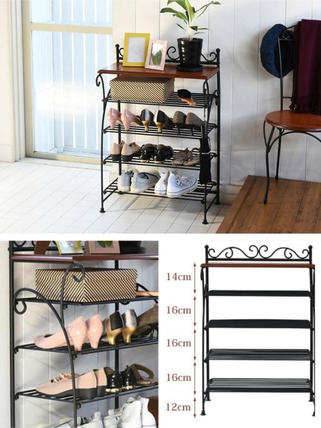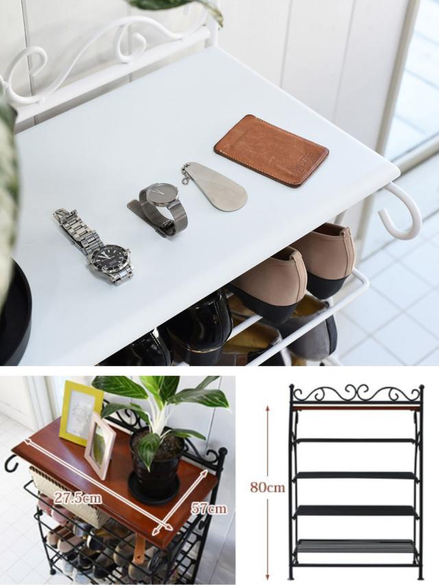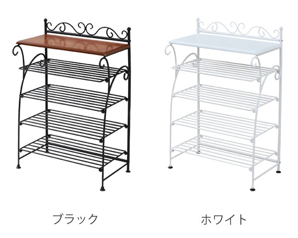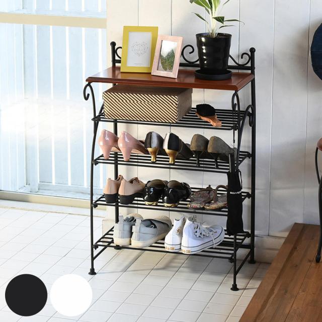 シューズラック 幅61.5cm 4段 ロートアイアン 姫系 ( 靴箱 洋風 靴入れ 玄関収納 玄関 靴 収納 幅61.5 奥行35.5 高さ90 組立 オープンラック スリム 四段 スチール アイアンフレーム アンティーク おしゃれ )