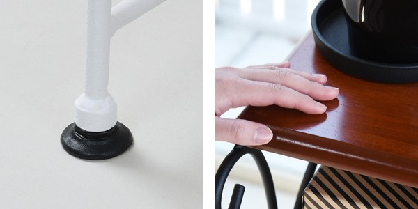 | ぐらつきを防ぐアジャスター 脚には高さ調節用のアジャスターが付いています。ぐらつきを抑えてセッティングできるので、安心してご使用いただけます。 | 自然な質感のラッカー仕上げ ラッカー塗装を施しているので、木の自然な質感を失うことなく、なめらかで柔らかな光沢が印象的です。 |