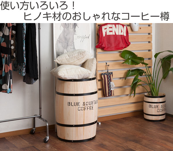 コーヒー樽 木樽 ヒノキ製 LLサイズ 高さ67cm ( インテリア 収納 木製 樽型 バレル 鉢カバー サイドテーブル 店舗什器 おしゃれ 国産 天然木 )
