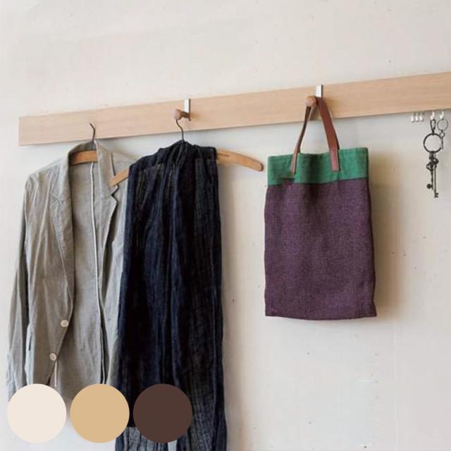 壁掛け ハンガーフック 幅90cm 奥行3cm 木目調 壁面収納 レール フック 長押風 ( フック付き ウォールハンガー コートハンガー ハンガー掛け 壁面 収納 壁掛けハンガー 壁掛けフック 玄関収納 洋服掛け コート掛け リビング収納 )