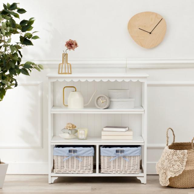 フリルがついたような愛らしいデザインのオープンラックです。桐や柳を使用し、ナチュラルな素材感を楽しむことができます。コンパクトなサイズ感なので、子ども部屋や一人暮らしの方にもおすすめです。
