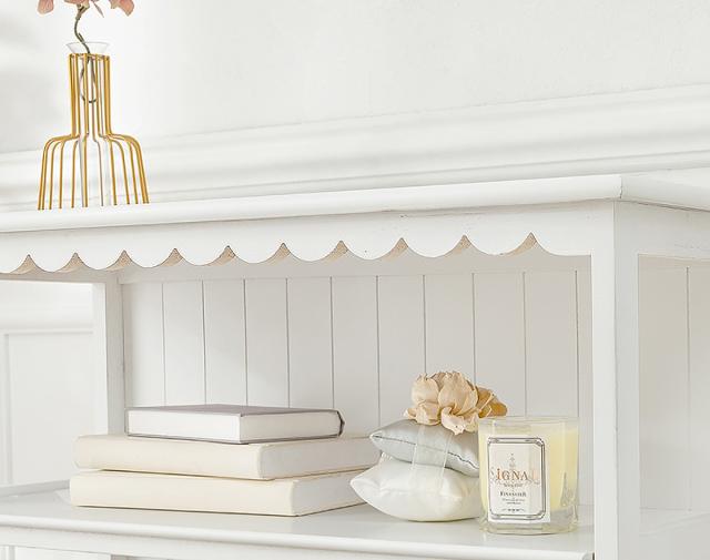 天板下は2段のオープンスペースで、お気に入りの雑貨を飾って魅せる収納を楽しむことができます。文庫本や小さめの絵本などを収納するのにもぴったりです。