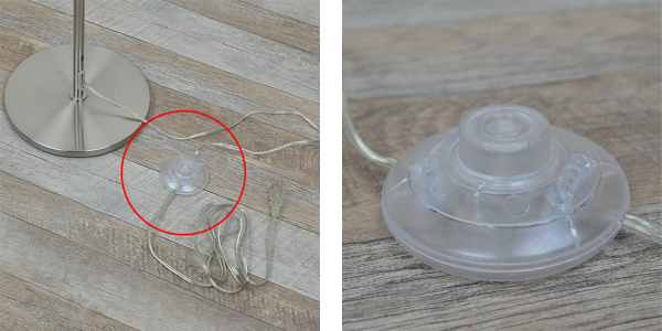 フットスイッチが付いているので、手を使わず簡単に電気を点灯できます。透明なので、床の上でも目立ちにくい仕様です。