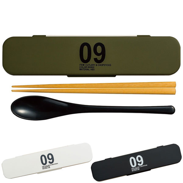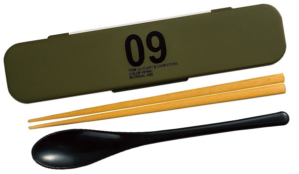 ロゴがおしゃれなミリタリー風デザインのスプーンと箸のセット