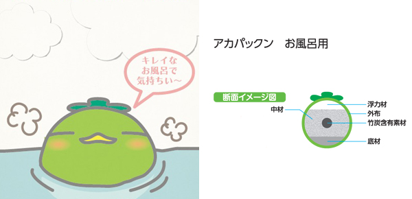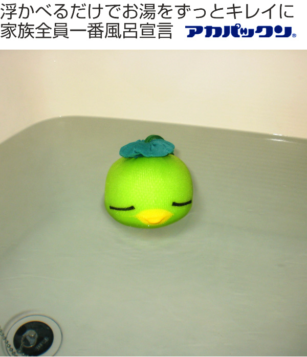 「アカパックンお風呂用」をお風呂に浮かべておくだけで、お湯をキレイにキープしてくれます!