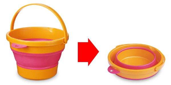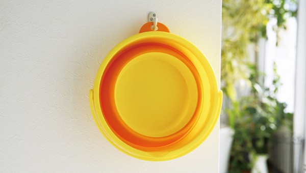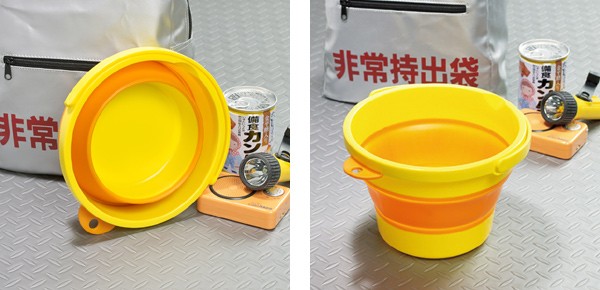 たたむとコンパクトになるバケツは防災袋に入れておくと緊急時に役立ちます。