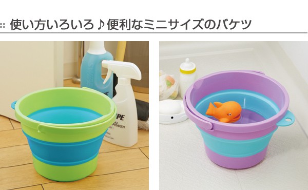 | 掃除・洗濯用に 窓拭きやモップがけ時、靴などちょっとした小物を洗いたい時に便利です。 | お風呂場での遊具として カラフルでかわいいデザインのバケツはお風呂場で使う子供用の遊具にぴったり♪ |