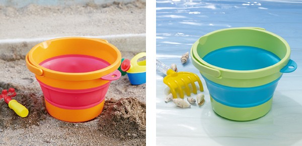 | 公園での砂場遊びに かわいいデザインは小さな子供にぴったり。やわらかい素材を使用しているので安全にお使いいただけます。 | 潮干狩りに ミニサイズなので潮干狩りにもぴったりです。バケツの色が砂浜で映えるので目印になります。 |