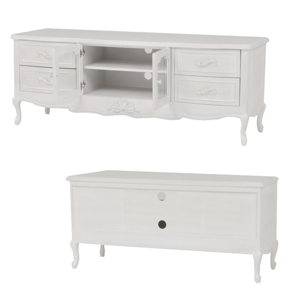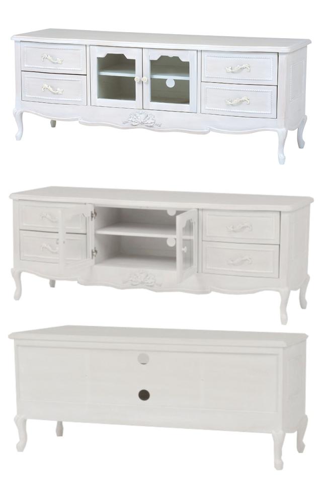 《 LH823 リビング収納 AVボード TVラック 飾り棚 棚 ラック 白 ホワイト プリンセス シャビー アンティーク ロマンチック ロマンティック ヴィンテージ 大人かわいい 大人可愛い エレガント フェミニン 北欧 お洒落 オシャレ 家具 インテリア ハンプトンシリーズ 》