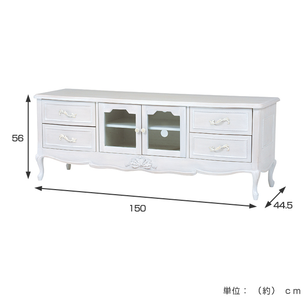 エレガントデザインのテレビ台 幅150cm美しい曲線と細部にまで施された装飾が魅力のテレビ台です。上品で優雅なフォルムはワンランク上の空間を演出します。