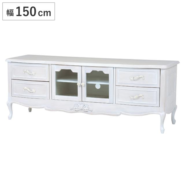 テレビ台 幅150cm 姫系 完成品 引出し付 HAMPTON ( リビングボード 白家具 猫脚 クラシック 天然木 アンティーク調 TV台 TVボード テレビボード 引き出し付き 扉 ディスプレイ マホガニー )