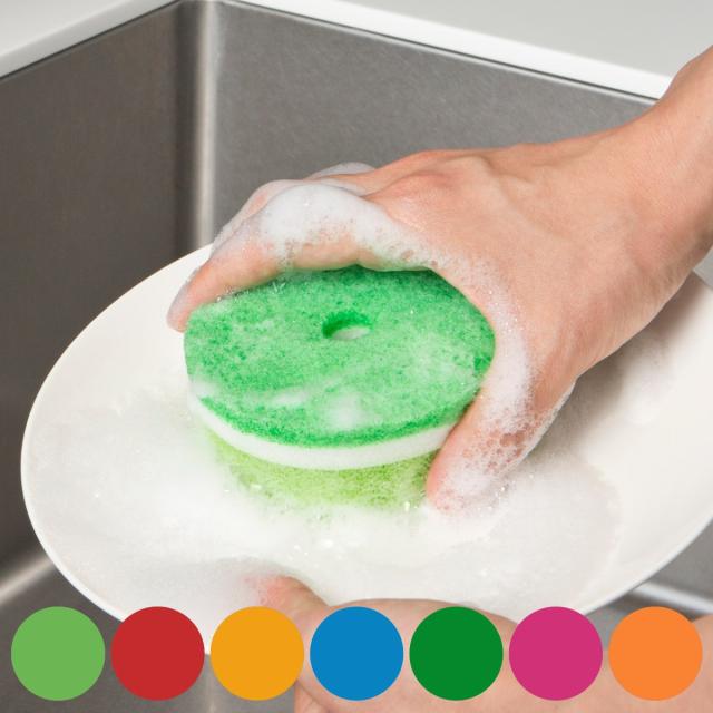 明るいカラーでキッチンをかわいくいろどります。別売りの吸盤にスポンジの穴をPOCOっとはめれば、通気性もよく、スポンジを清潔に保つことができます。
