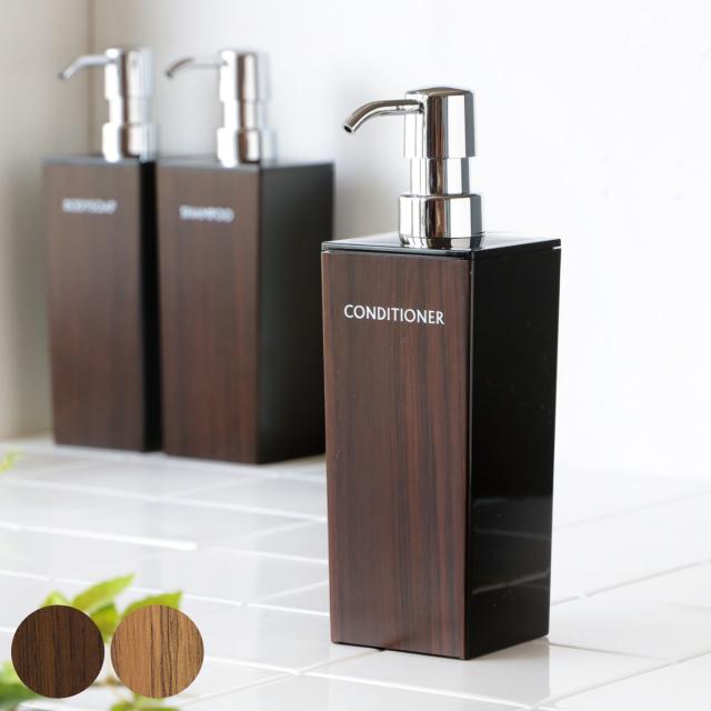 ディスペンサー WOODY 角型 500ml コンディショナー ( 詰め替えボトル 木目 バス用品 バス 風呂 お風呂 つめかえ そのまま プラスチック製 おしゃれ 木目調 ポンプボトル ボトル ポンプ 日本製 )