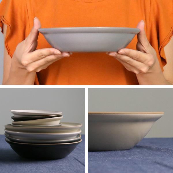 敢えて艶を鈍らせたマットな光沢、エッジを効かせた繊細なライン、新しさを感じるフォルム、すべてが完成された器です。シェアする時間をここちよく、笑顔が集まるにぎやかな食卓を演出します。