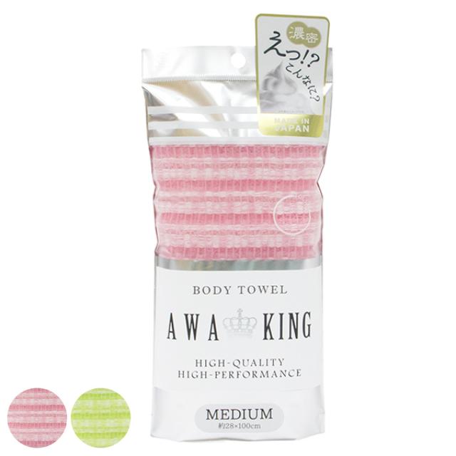 ボディタオル アワキング ミディアム ( ウォッシュタオル ボディータオル 浴用タオル 泡立ち 普通 柔らかい 日本製 バスグッズ タオル 体洗い ボディウォッシュ ナイロン ピンク グリーン )