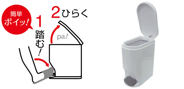 ペダルを踏んで簡単ポイッ、手を触れることなく開閉できる