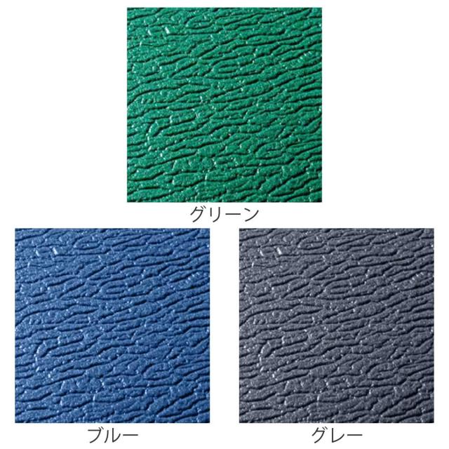 | 傾斜ふち付きで安全 めくりあがりによるつまずきや転倒を防止し、安全で快適に作業が出来ます。 | 転倒の危険性を減少させる 表面はシボ入り加工でスリップなどによる転倒の危険性を減少させます。 |