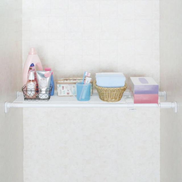 洗面所やトイレなどでデッドスペースになっている、ちょっとしたすき間ピッタリなつっぱり棚です。工具なしで簡単に収納スペースが作れます。