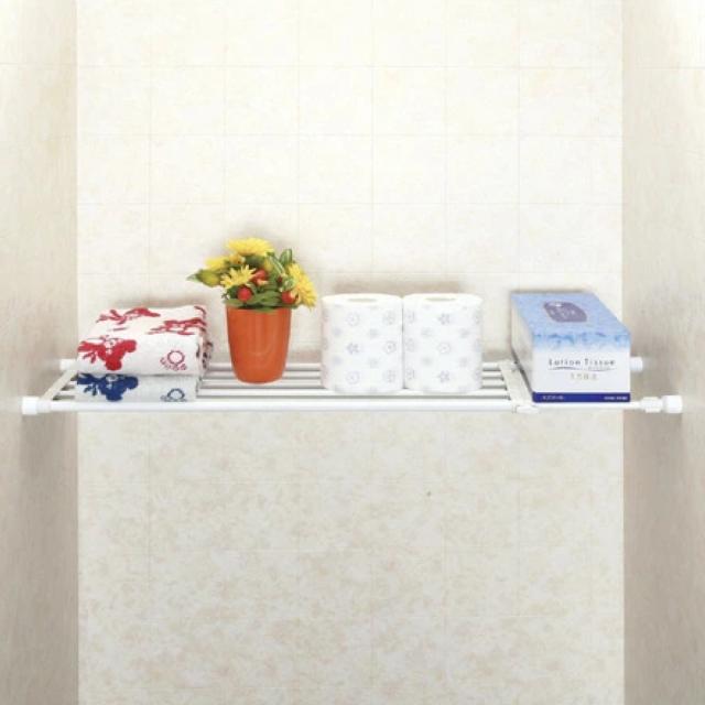 つっぱり式の棚は、トイレや洗面所、お部屋のちょっとしたデッドスペースに取り付けるだけで、簡単に収納スペースを作り出すことができます。