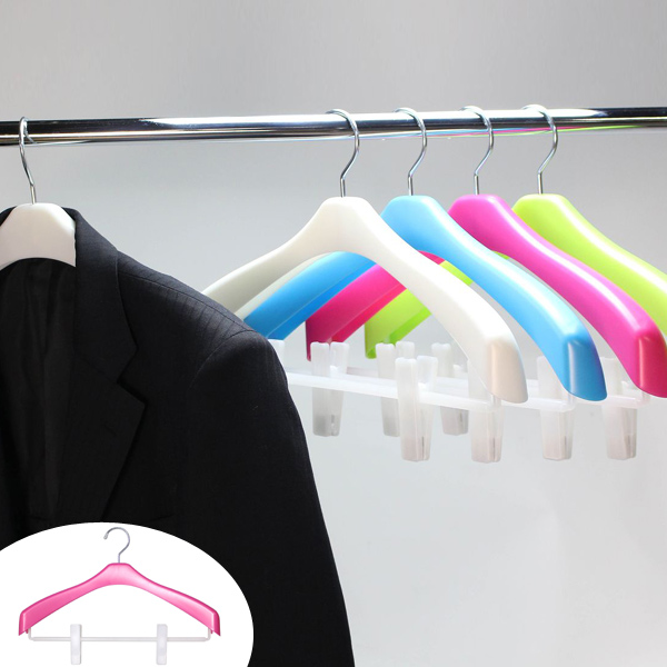 ●掛けた衣類がずり落ちにくい形状なのでジャケット等がきれいに掛けられます。