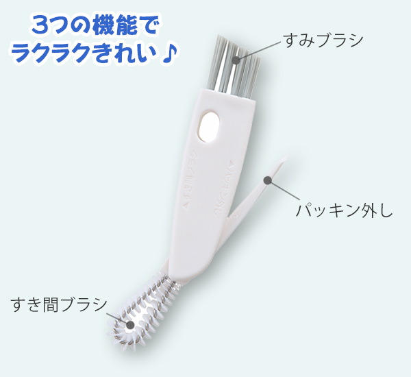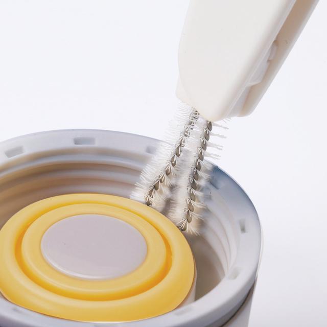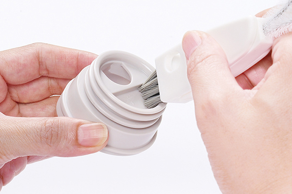 ●水筒のフタや飲み口が隅々まできれいに洗える3つの機能が付いたブラシです。
