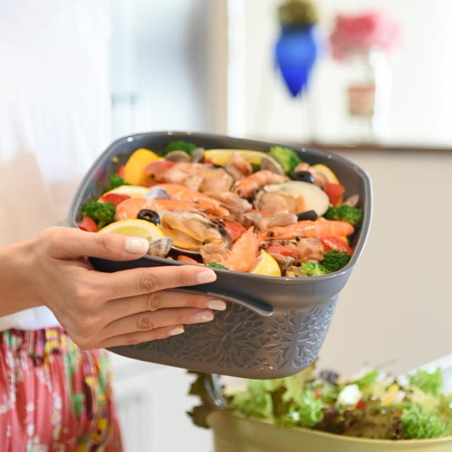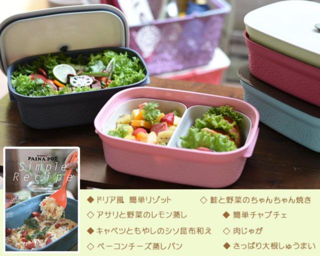 付属のレシピブックには、パイナポットと電子レンジで簡単に作れる8品のパーティーレシピが掲載されています。できたらそのままテーブルに出せて、残った料理は密閉してそのまま冷蔵庫や冷凍庫で保存できます。