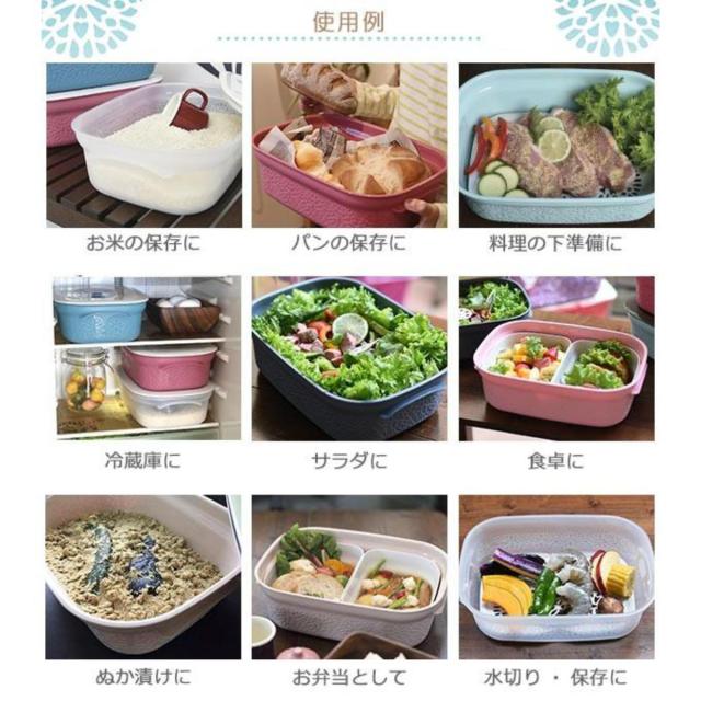 3kgのお米が入る大容量サイズです。冷蔵庫でお米を密閉保存することでお米の美味しさをキープします。可愛いだけじゃなく米びつとしても使える優れものです。