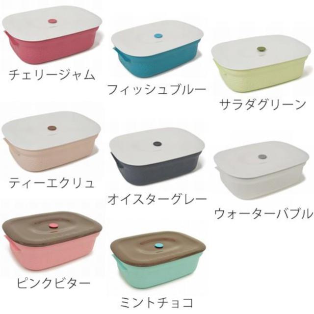4.3Lとたっぷり入る大容量の保存容器です。フタのエアーバルブをワンプッシュするだけで簡単に密閉できるので、料理の新鮮さを保ちパンやケーキの乾燥も防いでくれます。そのまま食卓に出してもキッチンのインテリアになる可愛いカラフルなデザインです。