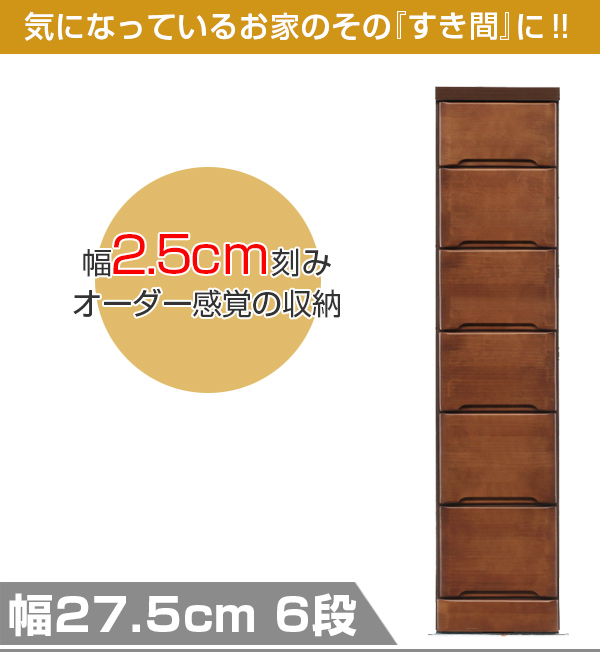 スリムチェスト 6段 すき間収納 引き出し 木製 幅27.5cm ( タンス チェスト ランドリーチェスト 整理タンス 完成品 収納 隙間 すきま 整理 衣類収納 チェストタンス 完成品)