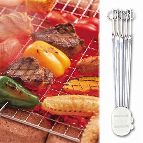 材料が回りにくい平板式!ステンレス製の焼き串5本組